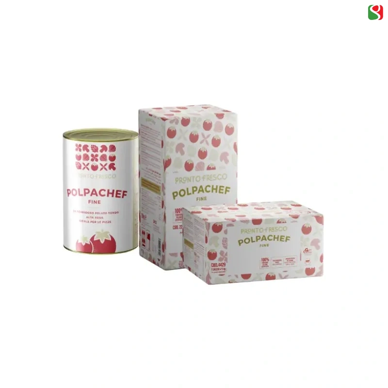“POLPA CHEF - FINE” High Quality FINELY crushed tomatoes for PIZZA - 5kg + 5kg Aluminum bags - Certified 100% Italian Tomato Tomato pulp with a creamy and velvety texture. Processed from fresh in season, when the fruits are perfectly ripe (July-September