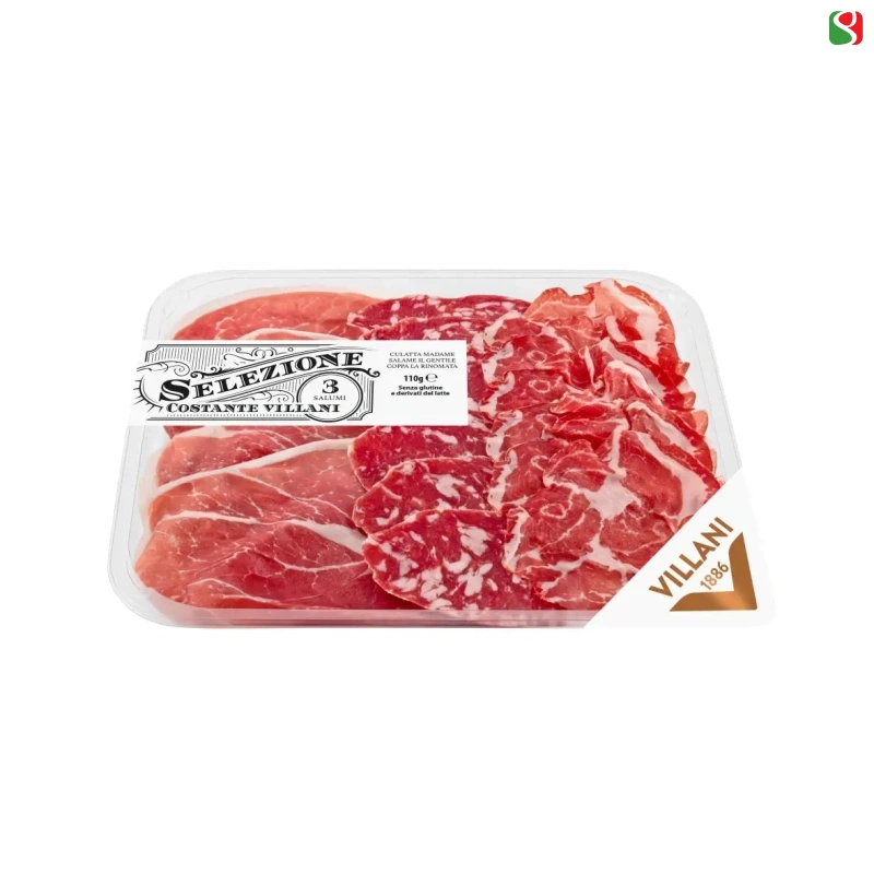 "Antipasto Selezione Costante Villani" sliced salumis (CULATELLO sink, Felino SALAMI, Parma COPPA), 110 g = 2 portions - parim enne 16/12/2025 - Hoida jahedas +1°/+4°C.